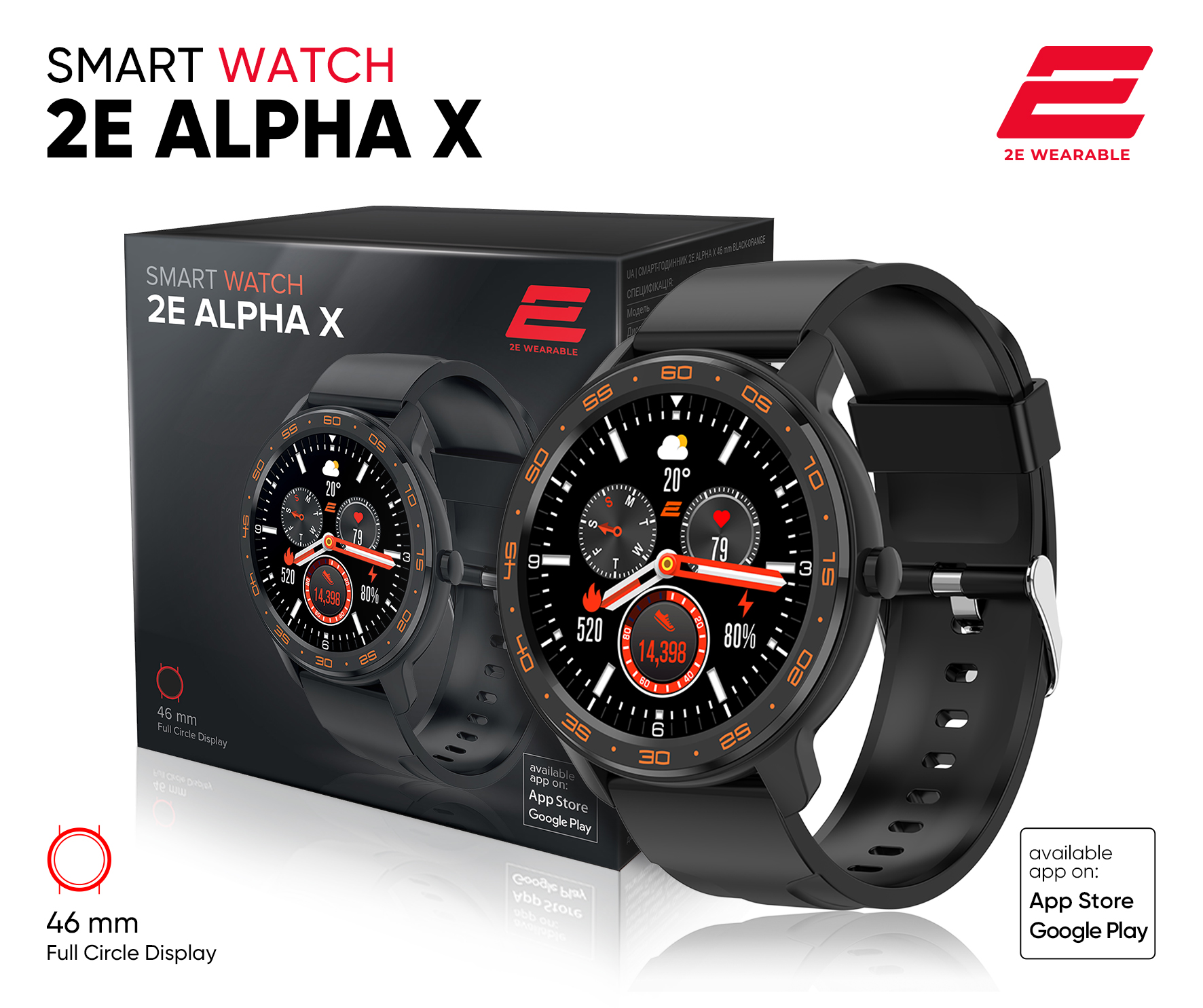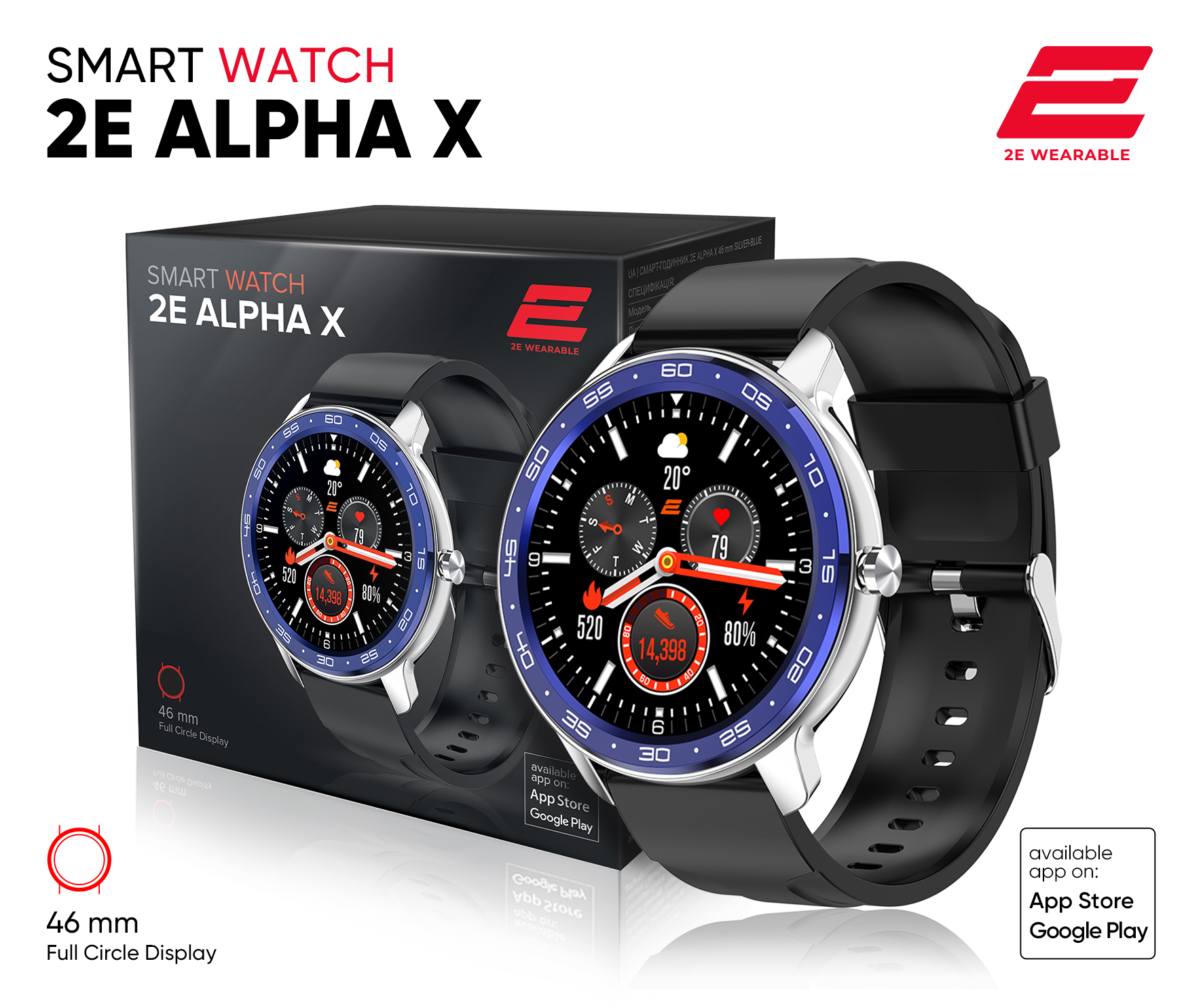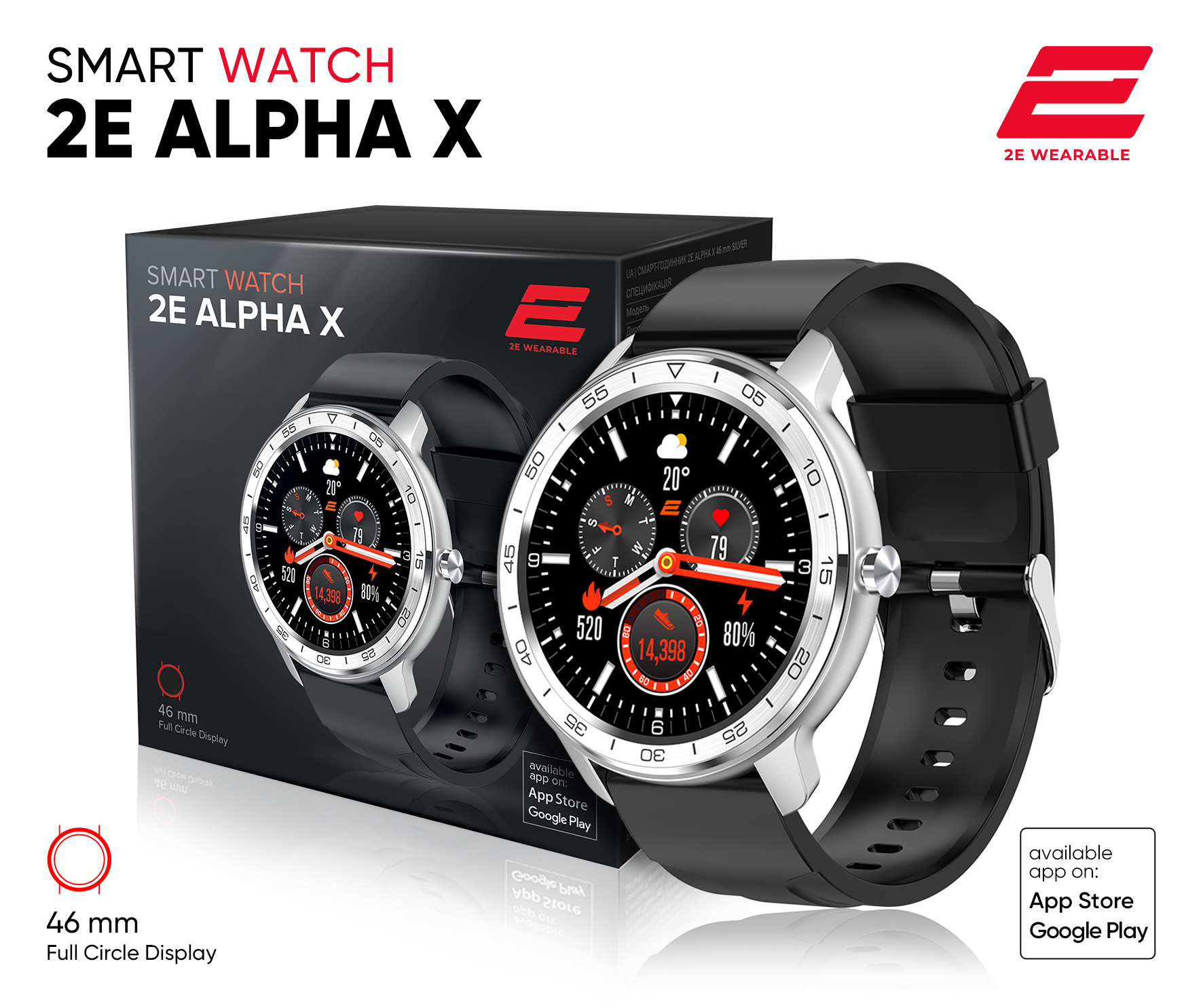 2E Alpha X 46 mm is stylish smart watch with a wide range of functions that can become your personal assistant every day. The large round display of the watch will pleasantly surprise with high-quality, clear and colorful images. Sensitive sensor and high brightness give the owner confidence and comfort in different lighting, even when used in direct sunlight.
