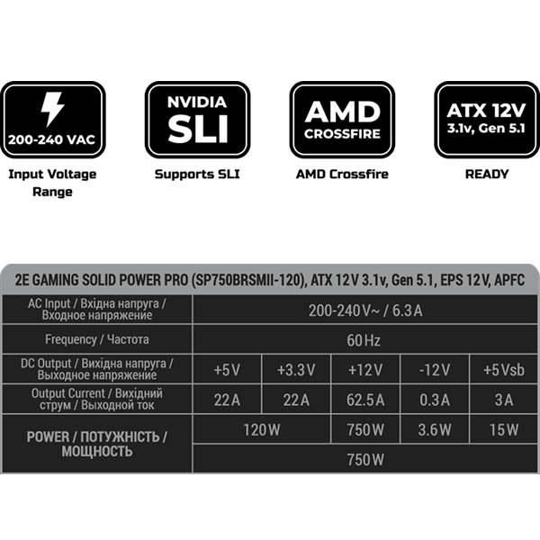 Supports a wide range of PC components. Minimal output voltage fluctuation. 12 V DC for stable system operation. Input voltage range – 200-240 V AC.