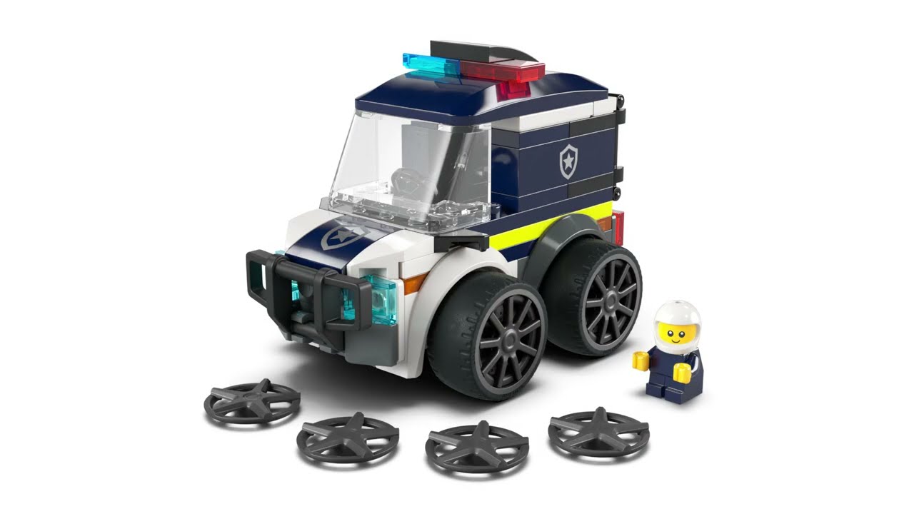 LEGO City Vehicles — Police Truck (60481) — simple and exciting set for children 5+, inspired by police adventures. The truck features modern design with stylish rims, low-profile rubber tires for stability, bumper, jail bars for “prisoners” and bright toy emergency lights. Includes a LEGO City Vehicles policeman minifigure that fits perfectly in the cab for role-play. The set develops imagination, fine motor skills and love for city adventures. After building, the model becomes a great addition to city play and can be combined with other LEGO City sets (sold separately). LEGO Builder app offers intuitive instructions with 3D rotation, zoom and progress saving.