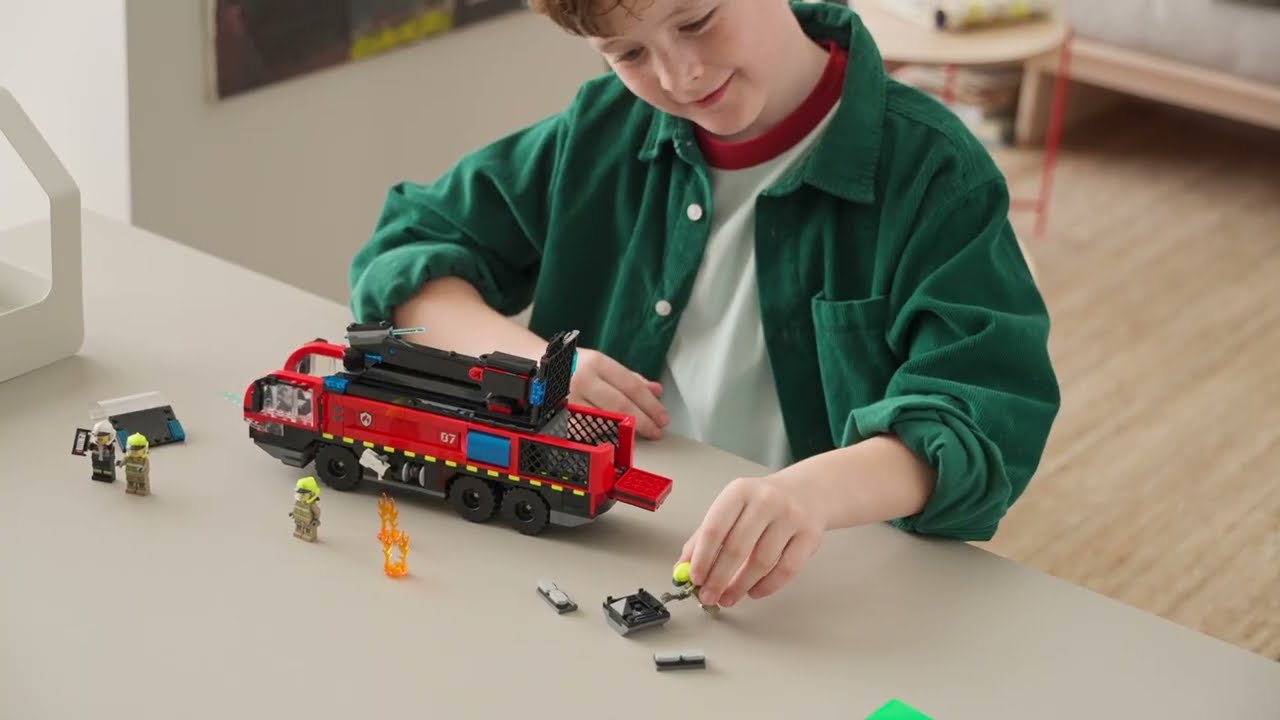 Kids can steer with a handle, activate water elements from the extinguisher and remove the engine for “repair”. Includes 4 firefighter minifigures for dynamic rescue scenarios. The set develops imagination, fine motor skills and role-play skills. The model can be combined with other LEGO City sets (sold separately), such as the airport. LEGO Builder app offers intuitive instructions with 3D rotation, zoom and progress saving.