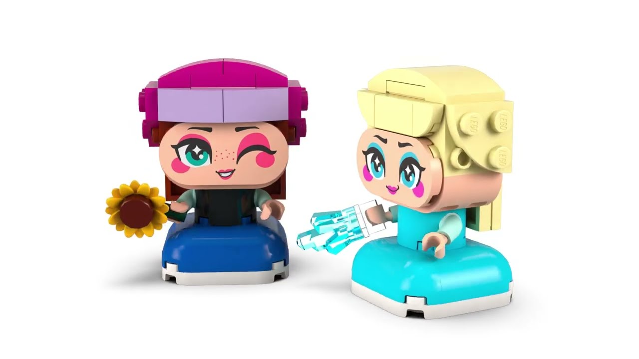 The LEGO® Disney Frozen Mini Princesses Anna & Elsa (43284) is a compact and enchanting way to introduce kids aged 5+ to the beloved heroines from Frozen. The stars of the set are two small brick-built princess figures: Elsa with her icy magic and Anna with her sunny personality. Each has posable arms, allowing children to pose them in different ways, make them hug, dance, or hold accessories — an ice bolt for Elsa and a bright sunflower for Anna.