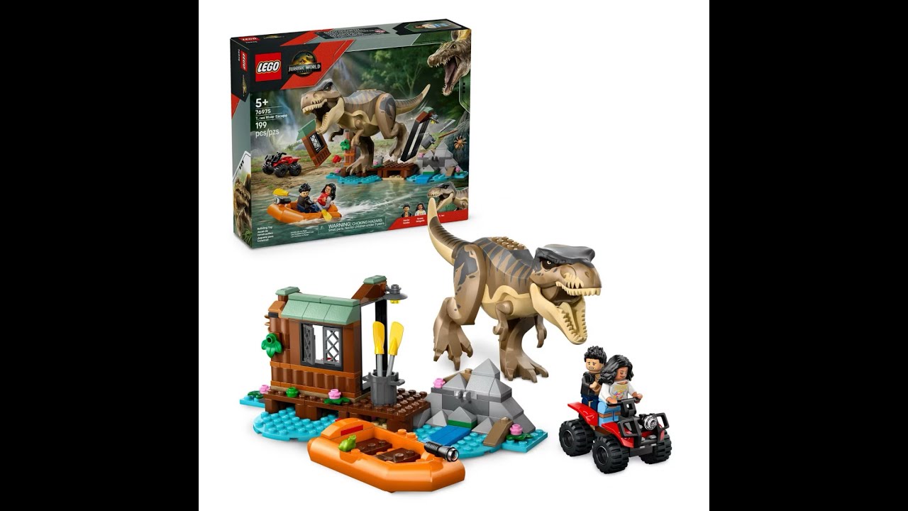 LEGO Jurassic World River Escape from T-Rex (76975) is a dynamic set for kids 5+ with posable T-Rex, minifigures and accessories for adventure stories about escaping dinosaurs. Easy to build, great for developing imagination and motor skills. Perfect gift for Jurassic World fans and adventure lovers. One of the most exciting LEGO Jurassic World sets of 2025 for younger kids.